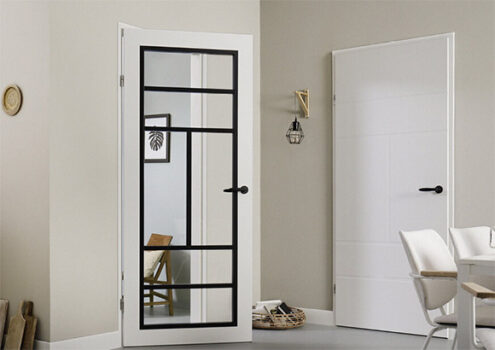 Diezelfde kleuren zijn er voor de glasdeuren van Svedex. Je kunt bij de glasdeuren kiezen uit vijf verschillende soorten glas. Je kunt zelf bepalen hoe groot het glazen deel van je glasdeur moet worden. Daardoor bepaal je hoe veel licht er doorgelaten wordt of juist weerhouden wordt. Het glas van Svedex deuren is gehard veiligheidsglas. Je kunt kiezen uit blank, blank-facet, satijn, gezandstraald en rookglas. Als je de andere kant niet scherp wil houden, kies je voor satijn. Rookglas geeft een donkere gloed. Glas in lood en 8 of 12 vakken glas zijn ook een optie.